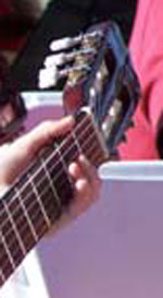 harsh sound. Use a nail file to smooth the right hand fingernails.